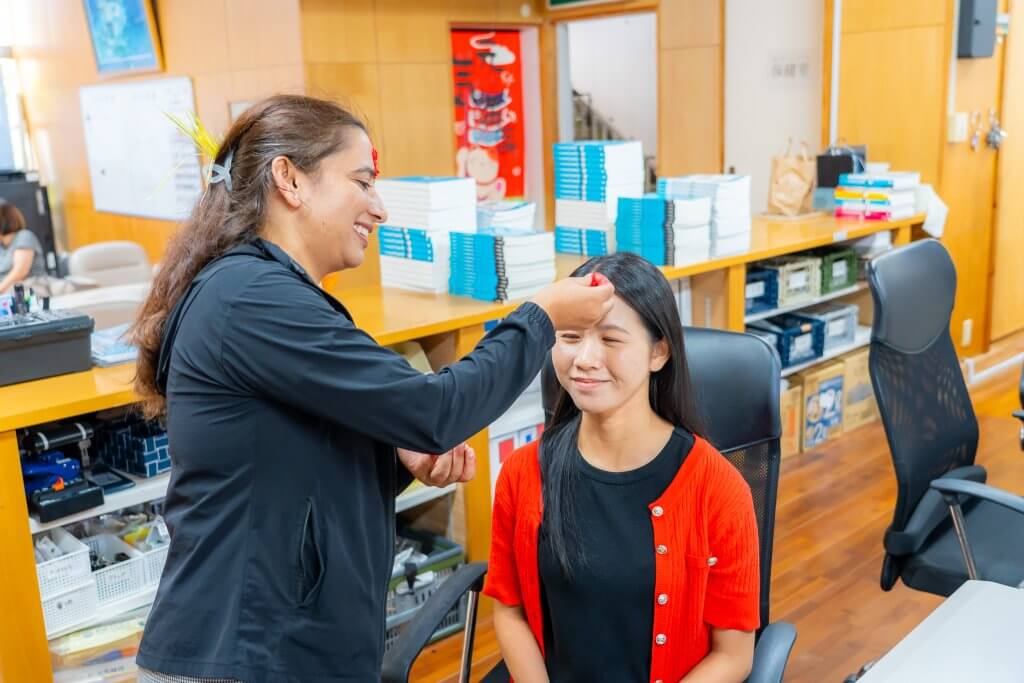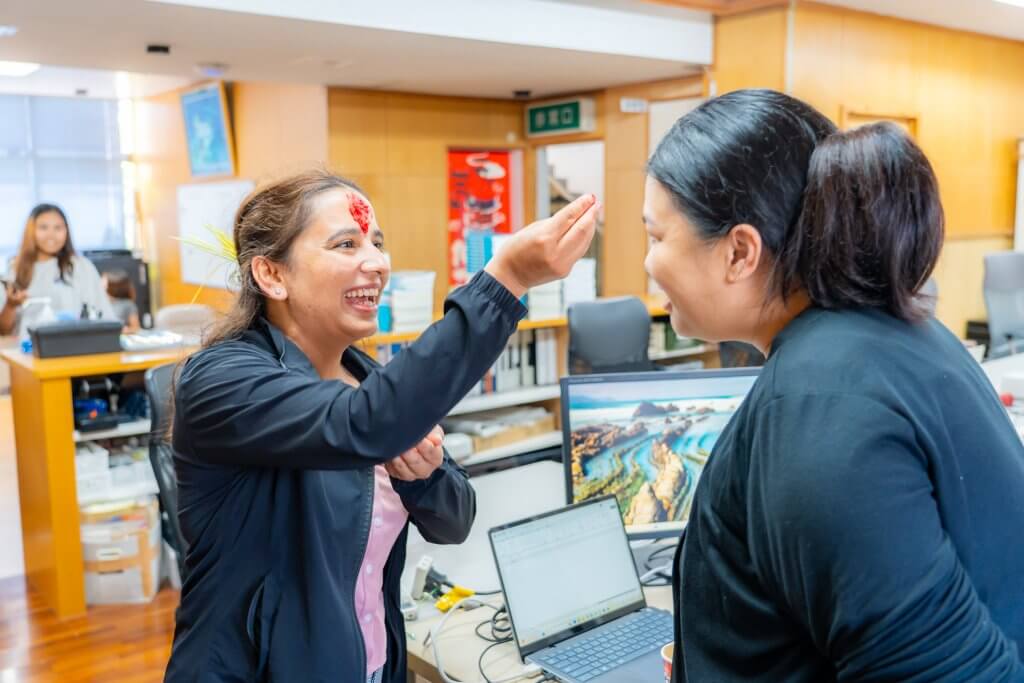 また、9月22日~10月1日までネパールではDashainという日本でのお正月のような大きなお祭り期間で、学生が先生達にDashainのお裾分けをしてくれました!