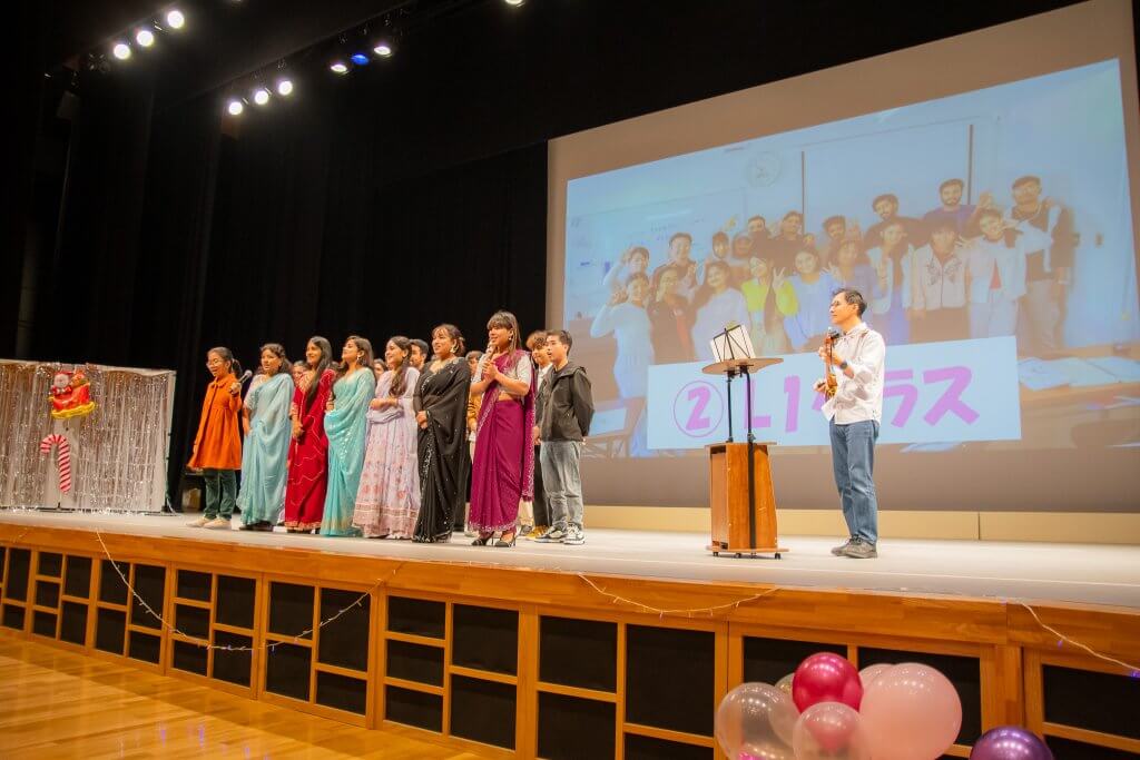 個人の出し物では、日本語で読み聞かせをしてくれた学生や、ネパールの学生は男女での息の合ったネパールダンス、今回初めてスリランカの女子による綺麗なダンスや、先輩クラスでは昔ばなしの桃太郎の演技もあったり、会場は大盛り上がりでした🍑
